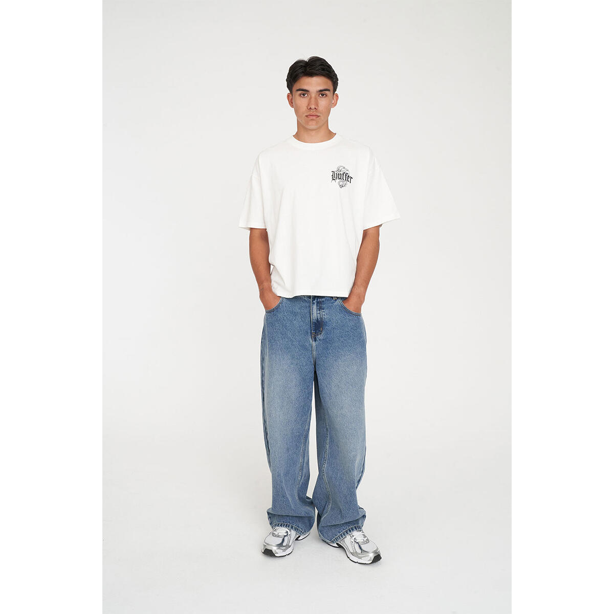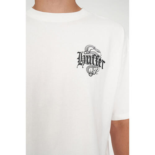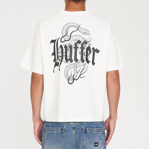 • What you need to know: 100% Cotton, 220gsm, 25mm Neck rib, Boxy cropped fit, Short sleeve, Huffer branded placement screenprint & puff print