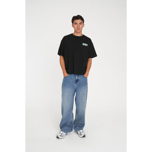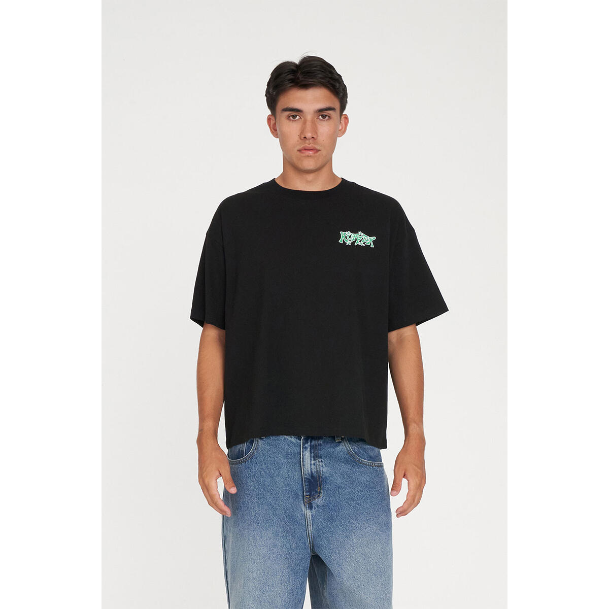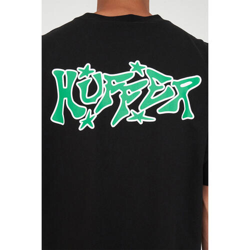 • What you need to know: 100% Cotton, 220gsm, 25mm Neck rib, Boxy cropped fit, Short sleeve, Huffer branded placement screenprint