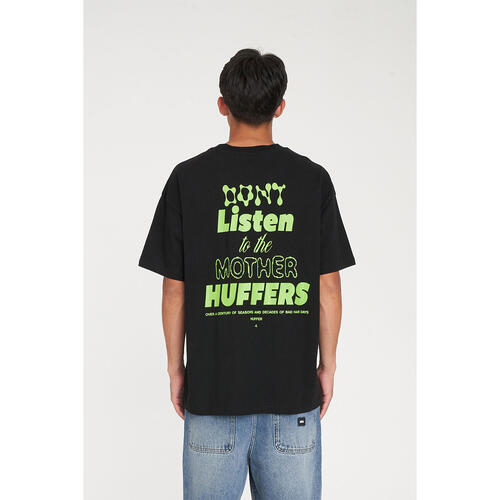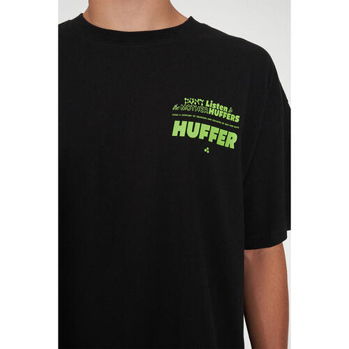 • What you need to know: 100% Cotton, 220gsm, 25mm Neck rib, Premium weight jersey, Boxy fit, Short sleeve, Huffer branded placement screenprint