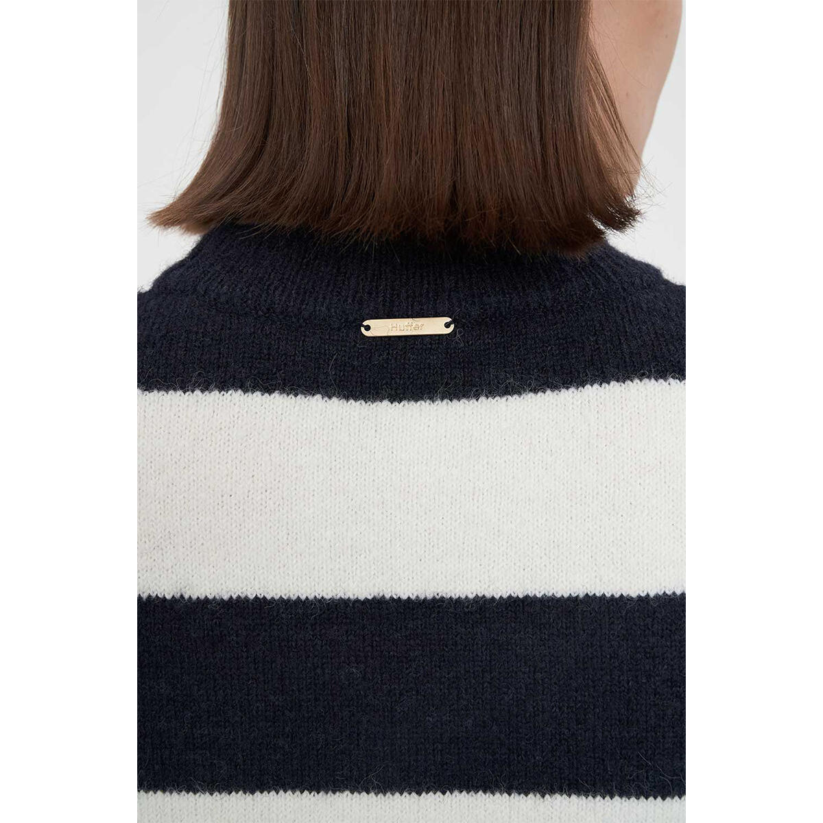 • What you need to know: 52% Polyester 40% Recycled Polyester 8% Wool, Fully fashion knit construction, Relaxed fit, Crew neck, Standard length, Straight sleeve, Huffer branded gold metal plate