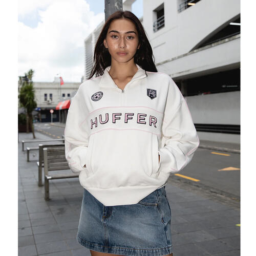 Huffer Womens Panelled 1/4 Zip 350 Chalk