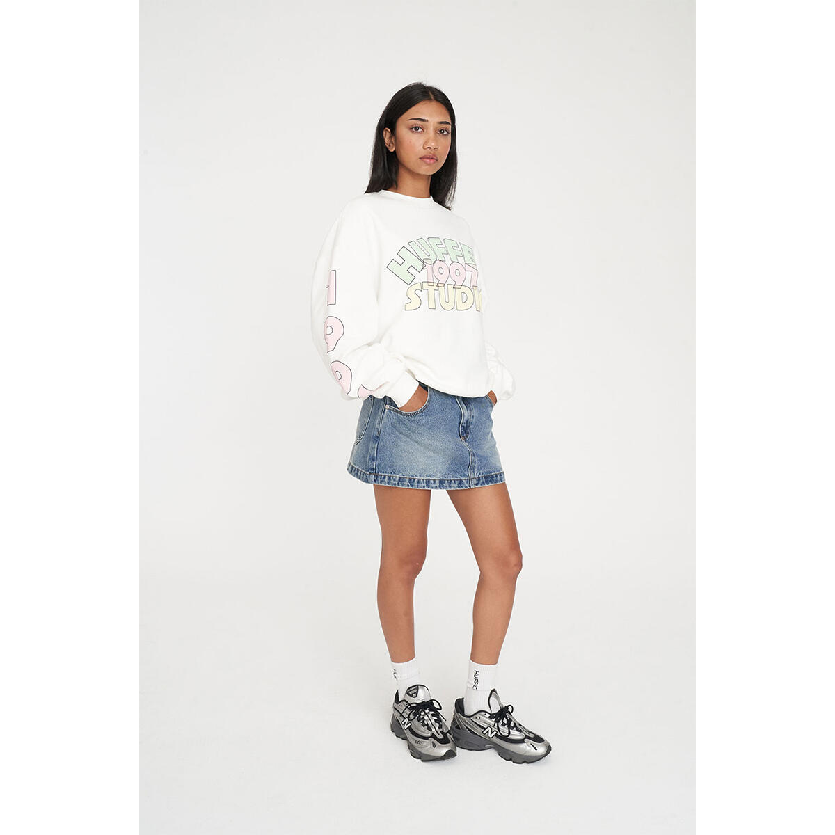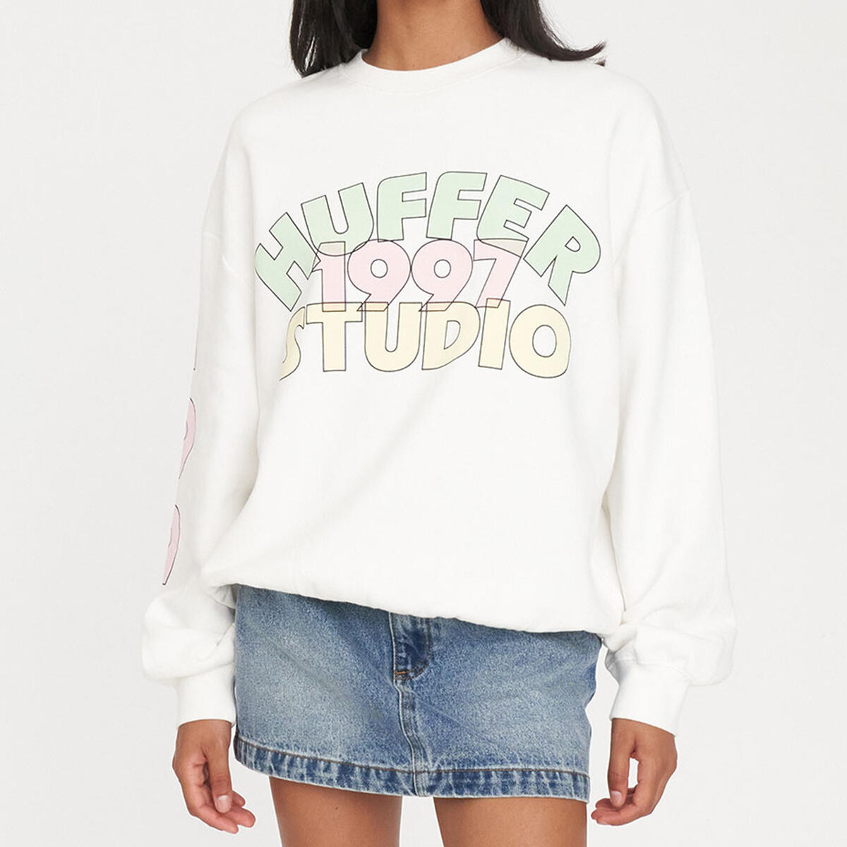 • What you need to know: 100% Cotton, 320gsm, Mid-weight brushback fleece, Custom Huffer colour, Boxy fit, Huffer branded hardware, Huffer branded screenprint