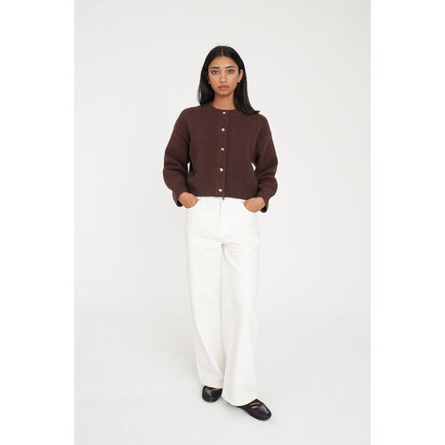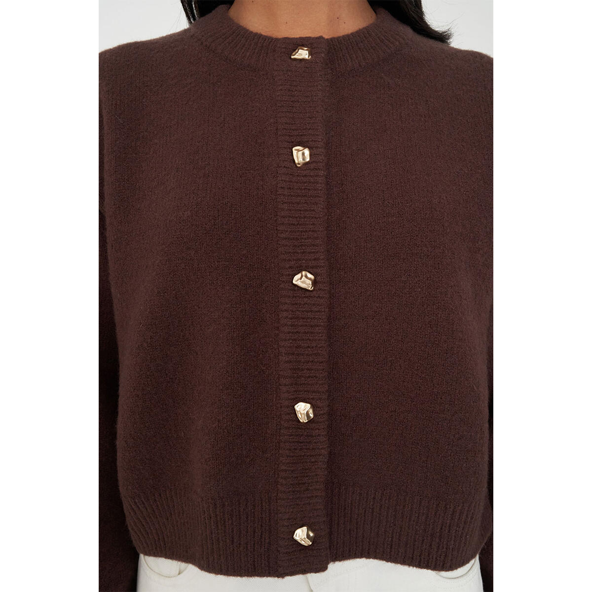 • What you need to know: 70% Acrylic 22% Nylon 5% Wool 3% Spandex, Fully fashioned knit, Relaxed fit, Crew neck, Button front placket, Straight sleeve, Huffer branded gold metal plate