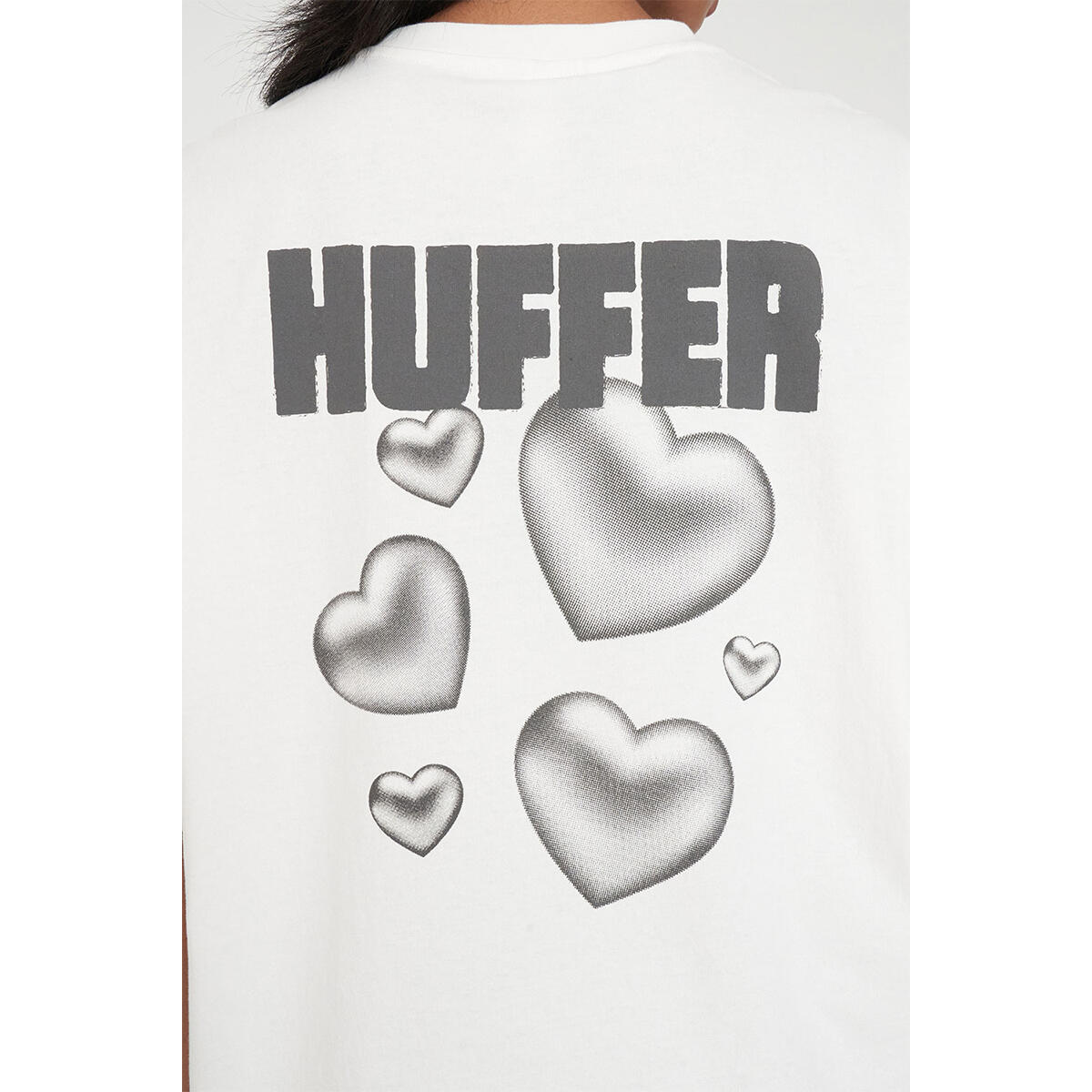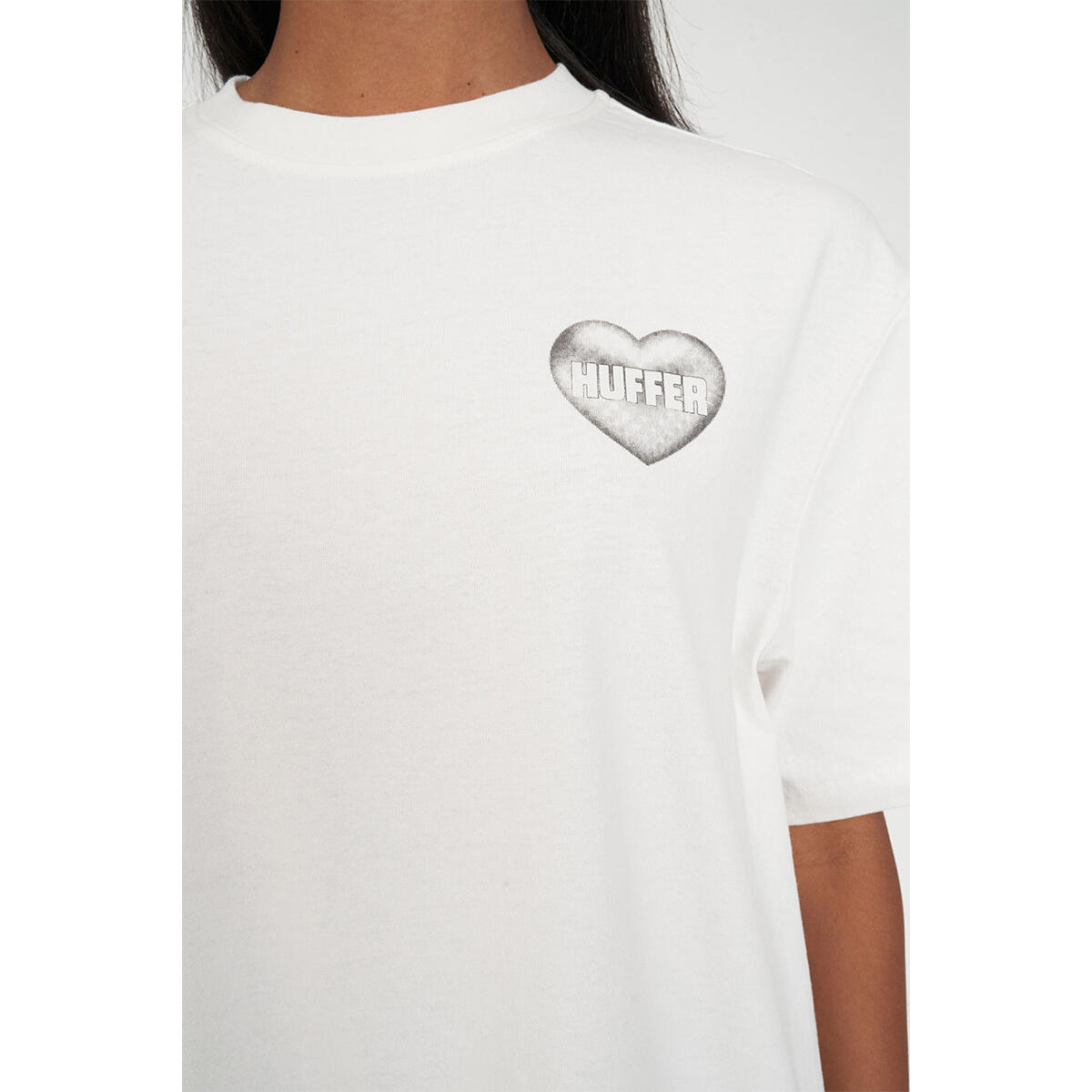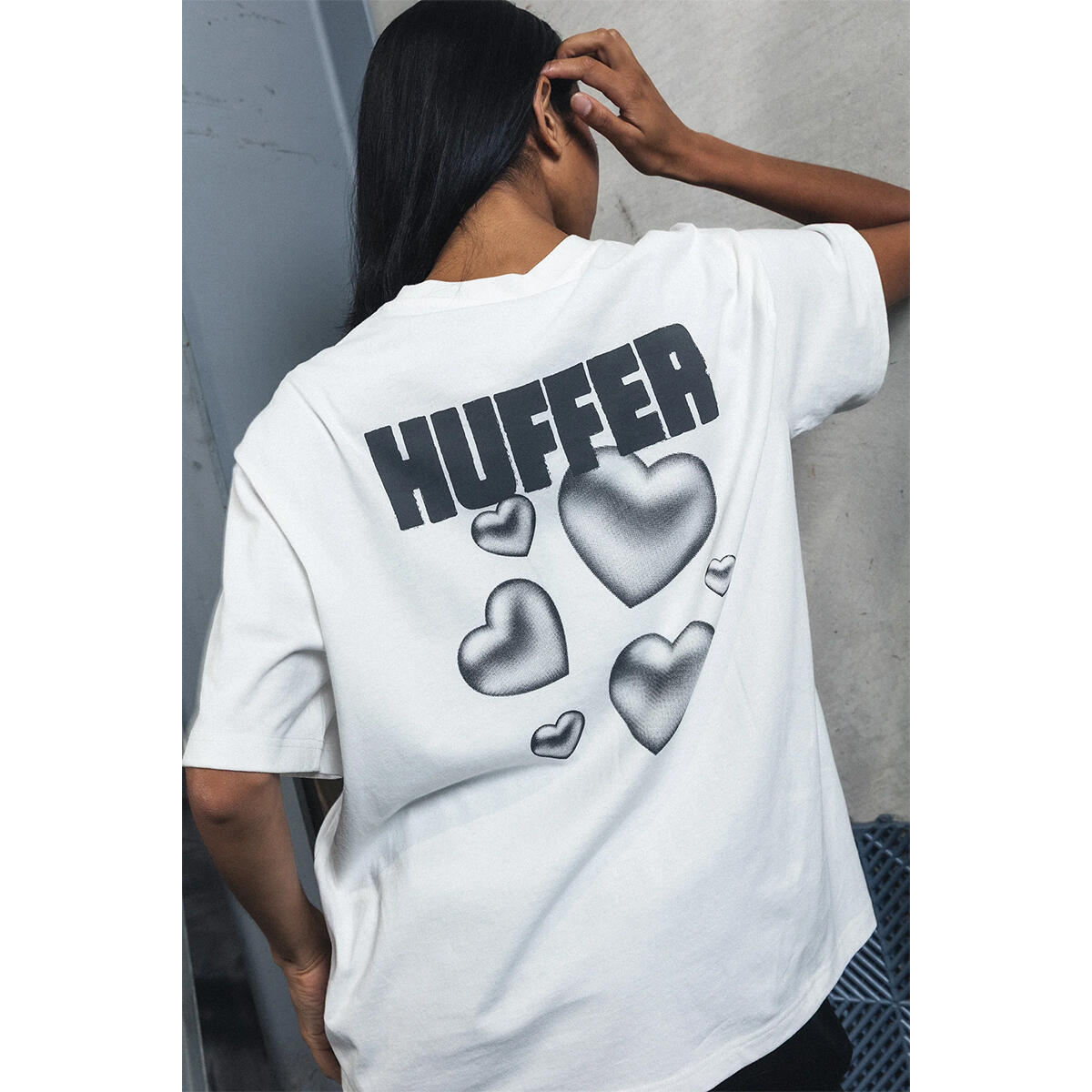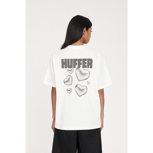 • What you need to know: 100% Cotton, 220gsm, 20mm Neck rib, Premium weight jersey, Boxy oversized fit, Short sleeve, Huffer branded placement screenprint