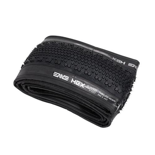 Pioneered on the SES Race Day road tyre, the HEX uses a nano-particle-enhanced rubber compound that reduces rolling resistance, improves traction, and extends tread wear. Combined with a supple casing, the HEX delivers a supple ride quality and rolling efficiency. The tubeless ready tyres are available in 48c and 44c sizes.