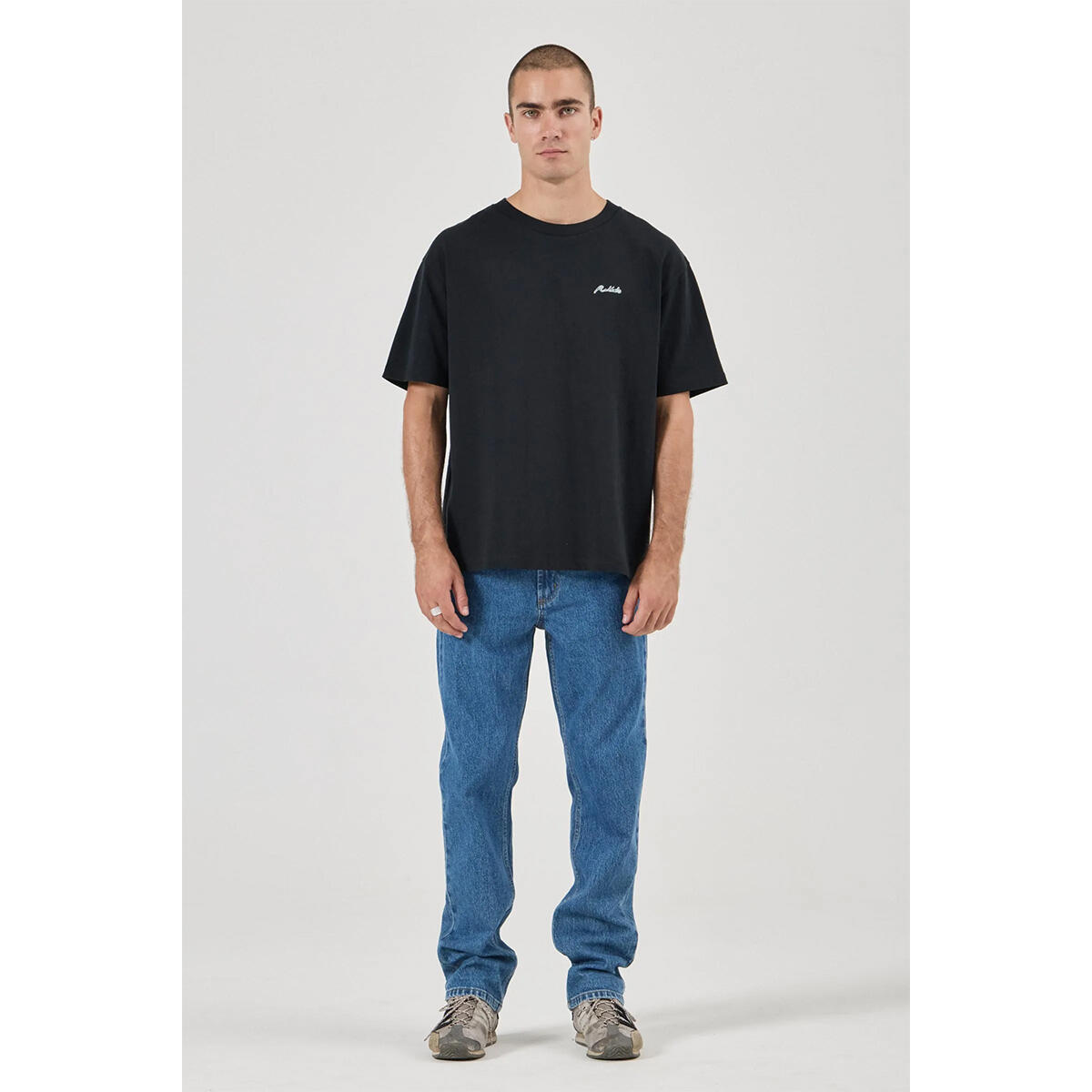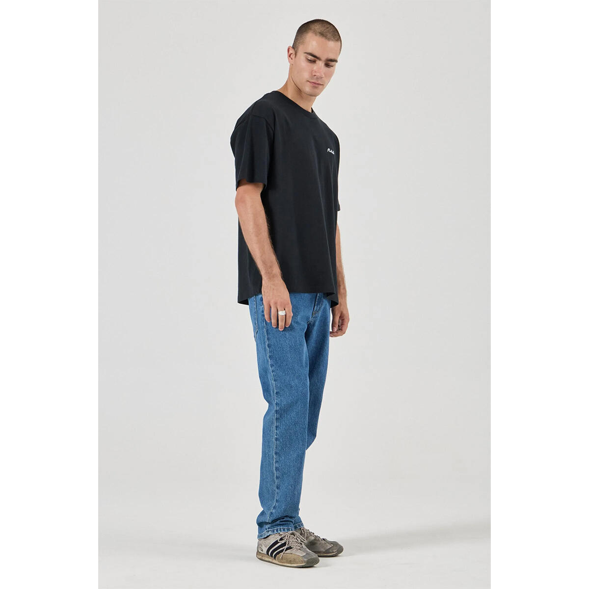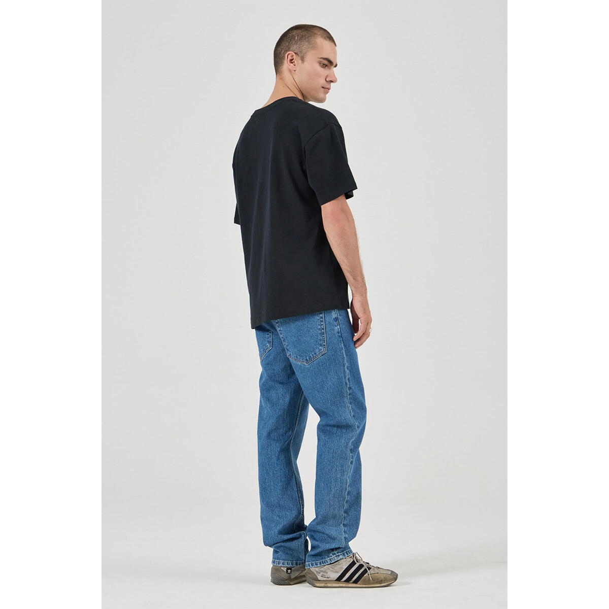 A modern straight-leg cut with a relaxed feel through the waist and thigh