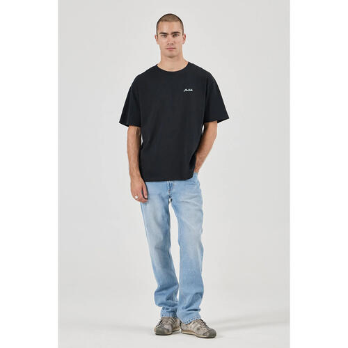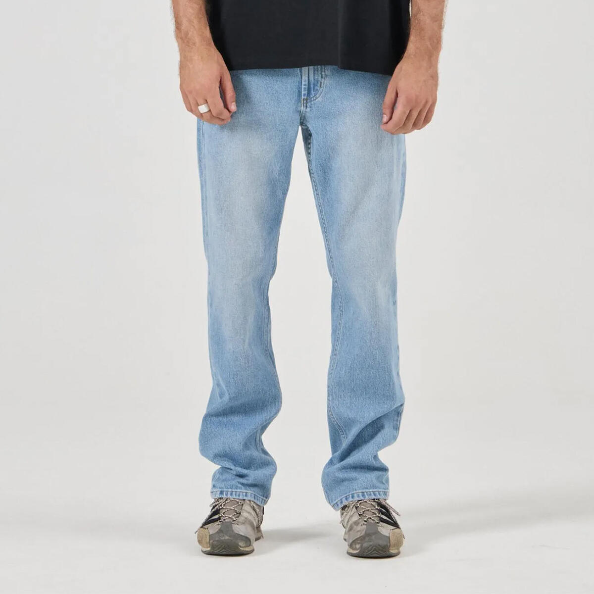 A modern straight-leg cut with a relaxed feel through the waist and thigh