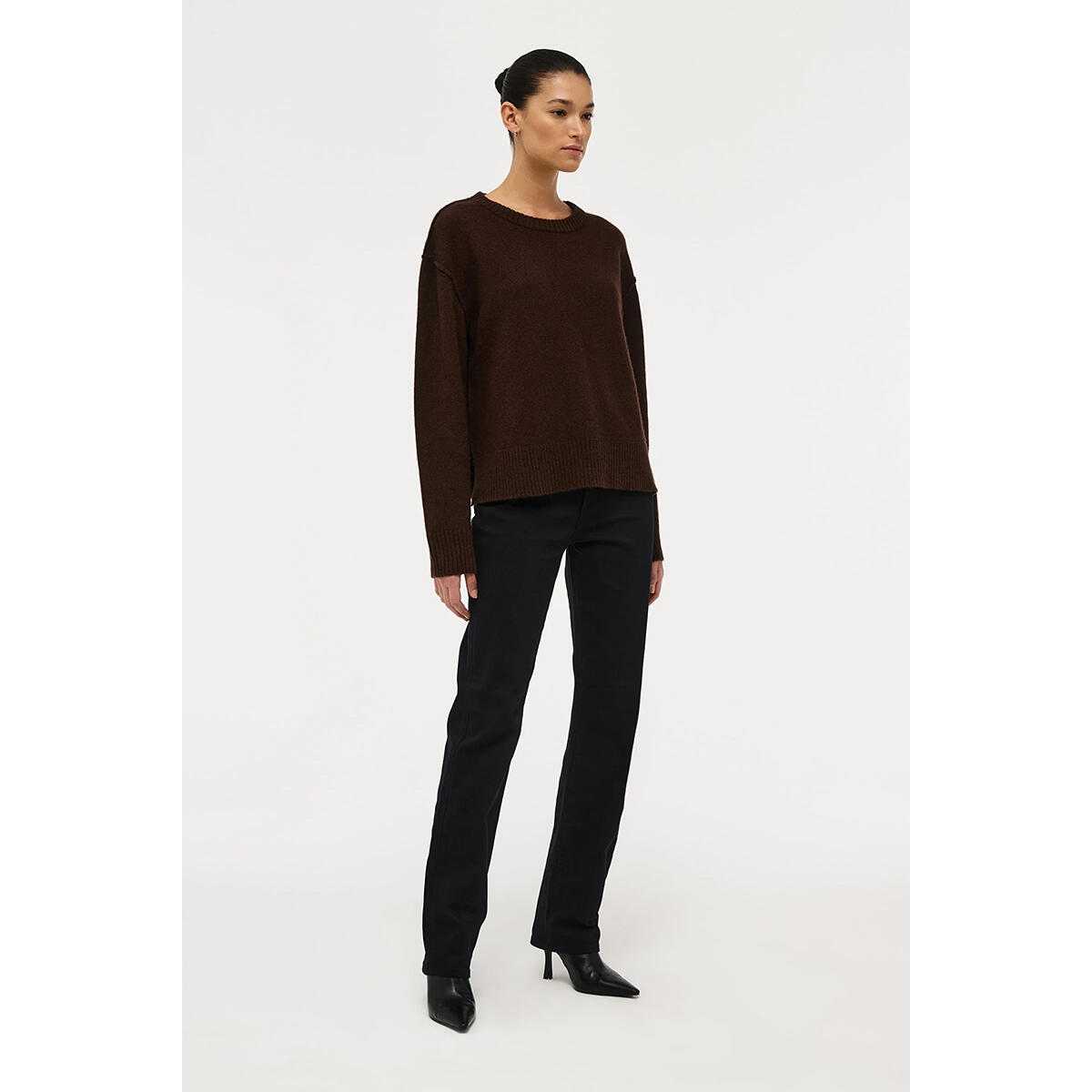 Classic rib crew neckline with ribbed cuffs and hem and subtle side seam splits
