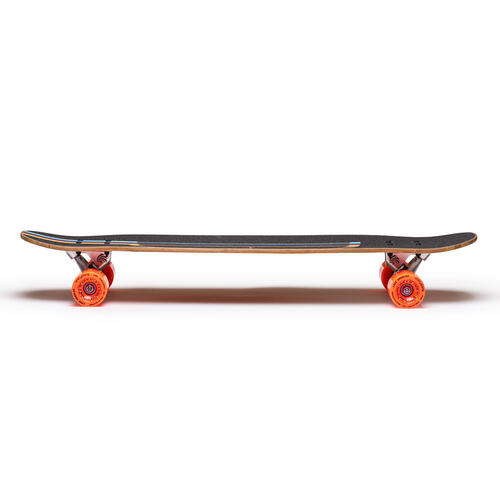 • Rocker between the trucks cradles your feet for a locked-in feel, enhances stability, and lowers the board for easier pushing. The rocker profile flattens at the inner truck holes to preserve steering geometry and creates a subtle “nano drop” for board awareness and extra support when carving and sliding.