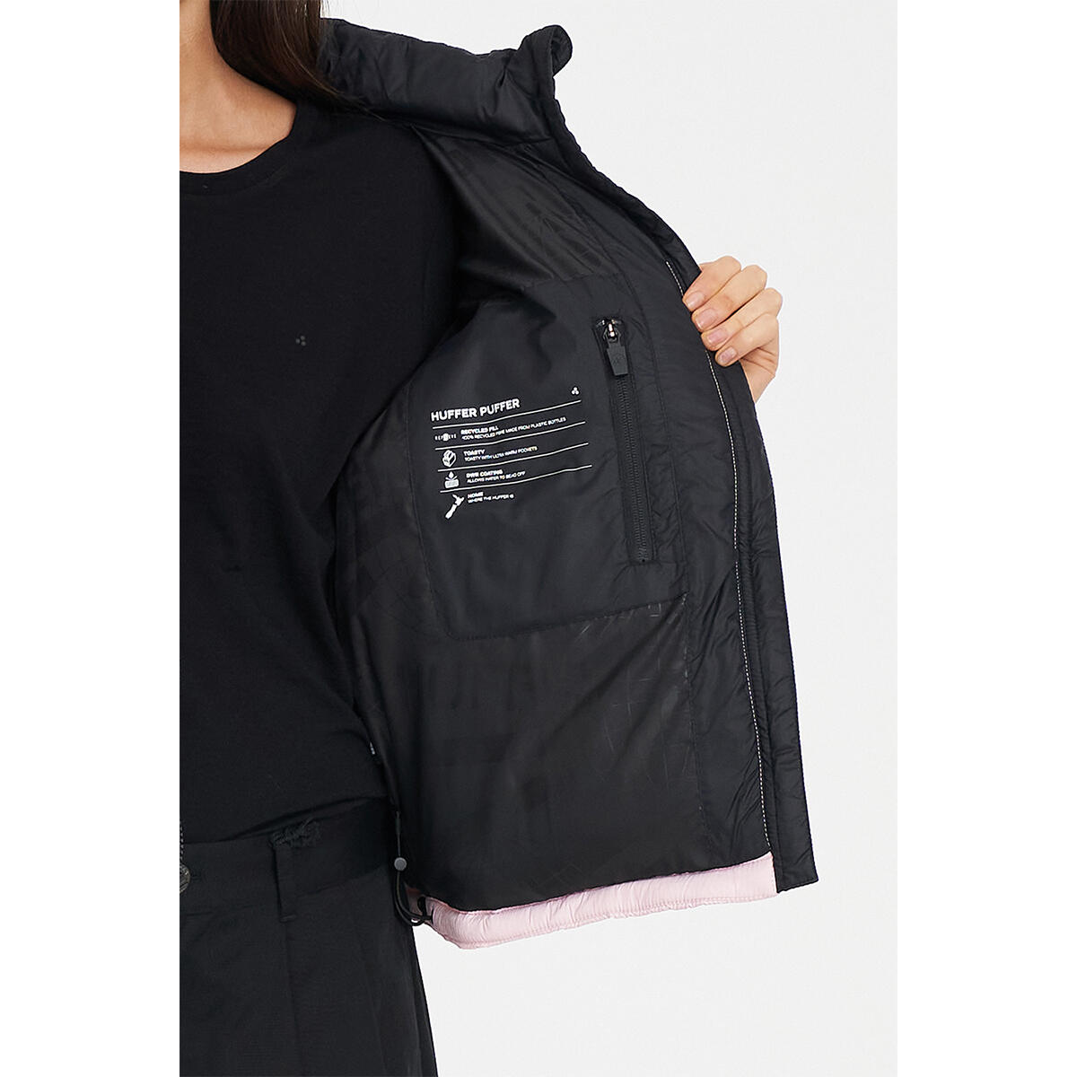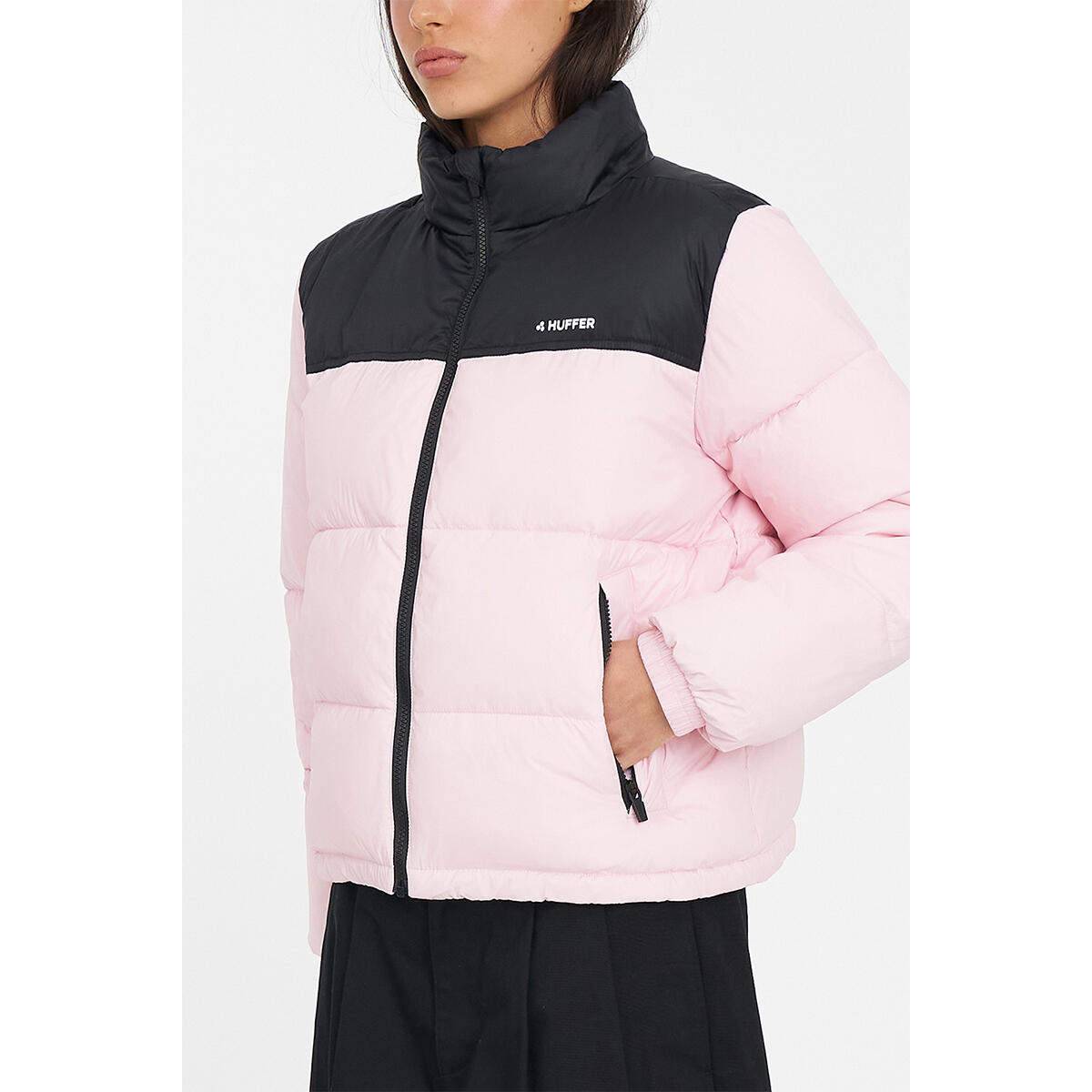 Huffer Womens Rider Puffer Jacket Black Petal