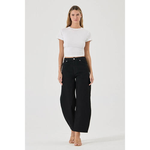 Sculptural barrel leg silhouette that gently tapers toward the hem