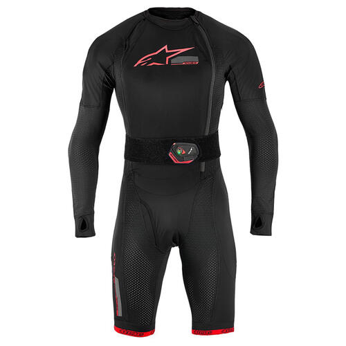 Tech-Air® 10 can be worn under any Alpinestars Tech-Air® Ready or Tech-Air® Compatible leather suits or any third-party leather suit with 4 cm of space around the circumference of the rider’s chest and 2 cm of room around the circumference of the rider’s hips. The additional space for the chest and hips is necessary to be able to accommodate the inflation of the airbag in the event of a crash.