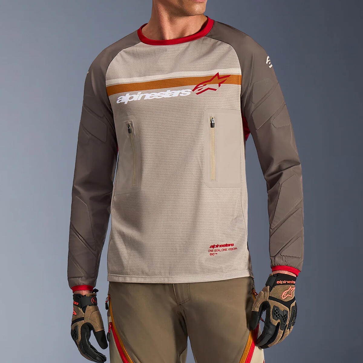 - Added Roost Padding in Key Areas: High-density, 2-way stretch woven fabric on the sleeves, reinforced with spacer mesh padding in key impact zones such as the forearms and elbows, helps reduce the effects of roost and trail debris on rugged trails.