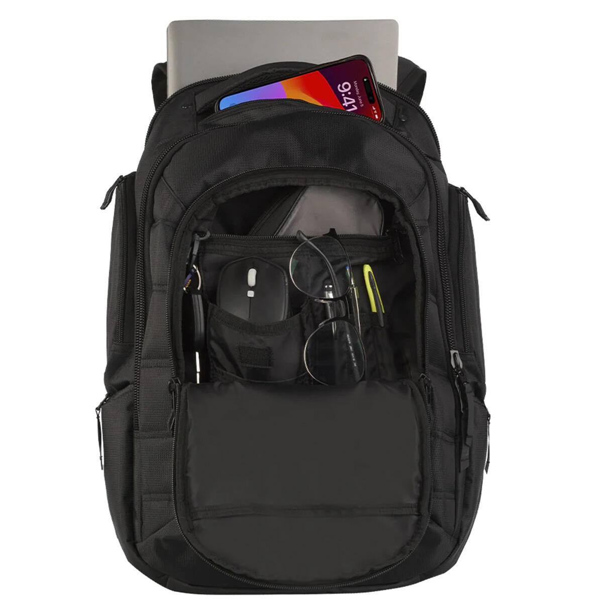 • Dedicated padded laptop compartment fits most 17” laptops
