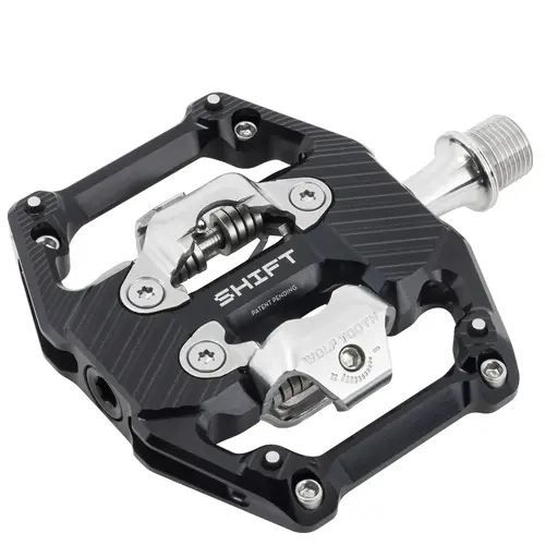 Wolf Tooth SHIFT Gravity Clipless Pedals are designed for maximum support and unparalleled confidence for downhill, enduro, and aggressive trail riding with flawless clip-in/out performance. Extra contact in the front and rear with optional rear-loading grip pins provide even more control for commanding rides.