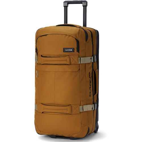 When the trip of a lifetime comes along, the Dakine Split Roller 85L travel bag gives you the space for that save-the-day rain gear and must-have gear, on top of all the other clothes you know you'll need. The bag divides organization into a split-level design that gives easy access to multiple large compartments. It's like a traveling locker room that you can live out of while on the road. Mesh dividers maintain visibility and the collapsible Split-Wing feature lets you compress the bag for easy storage when not in use. Bomber Oversize zippers provide years of reliable closure, and durable wheels keep you rolling down sidewalks with ease.