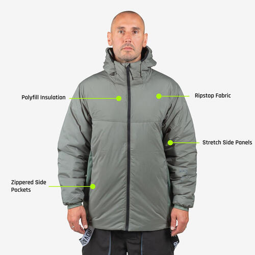 With polyfill insulation for reliable warmth, zippered side pockets for secure storage, and stretch side panels for enhanced mobility, this jacket adapts to any environment.