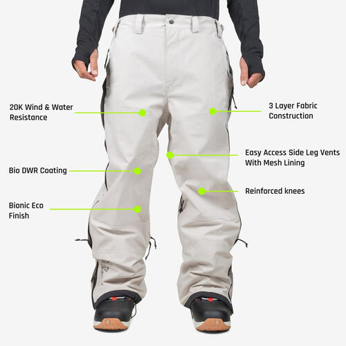 Reinforced knees and extra thigh layers provide added protection on chairlifts, while side leg vents, elasticated leg gaiters, and volume-expanding boot cut zippers offer breathability and versatility.