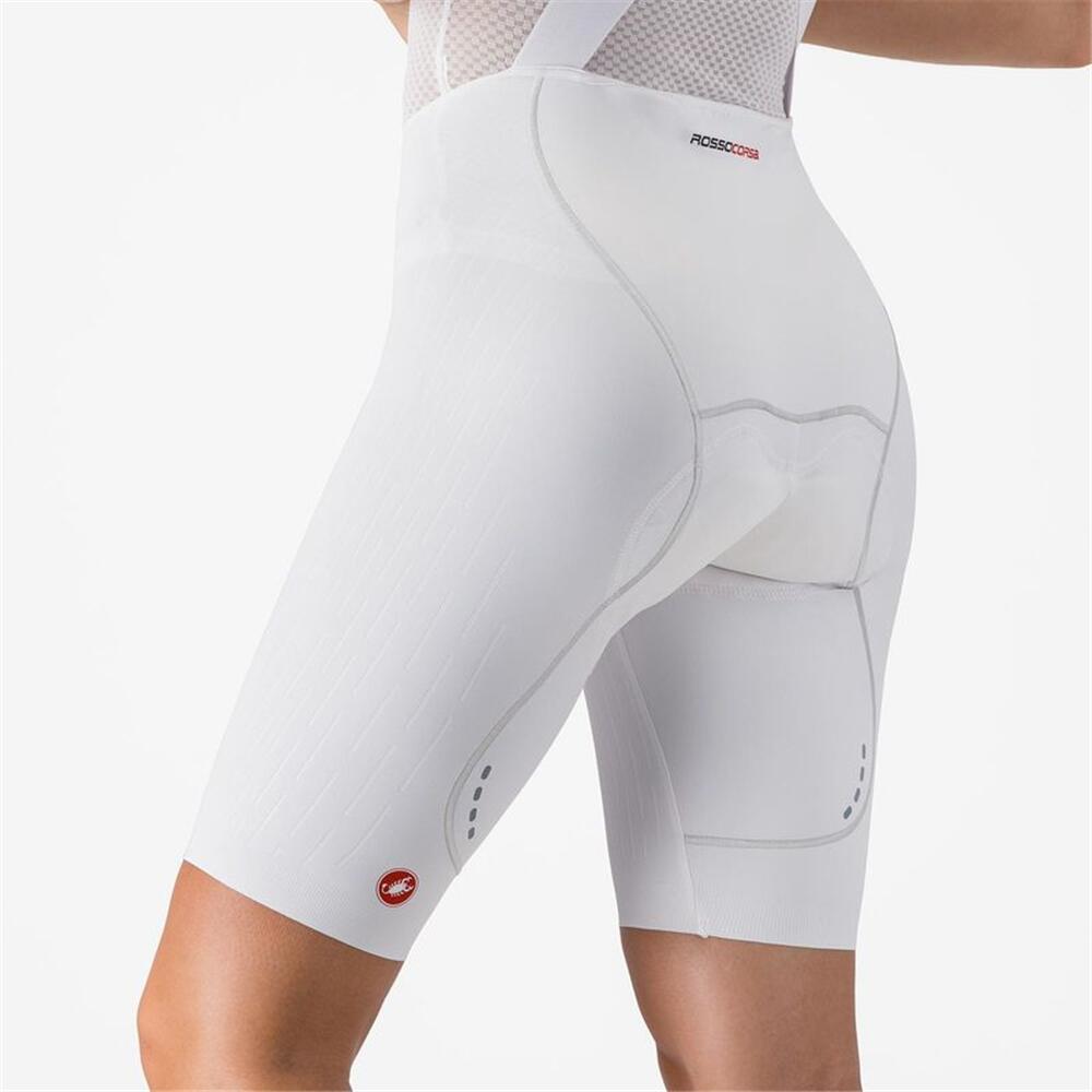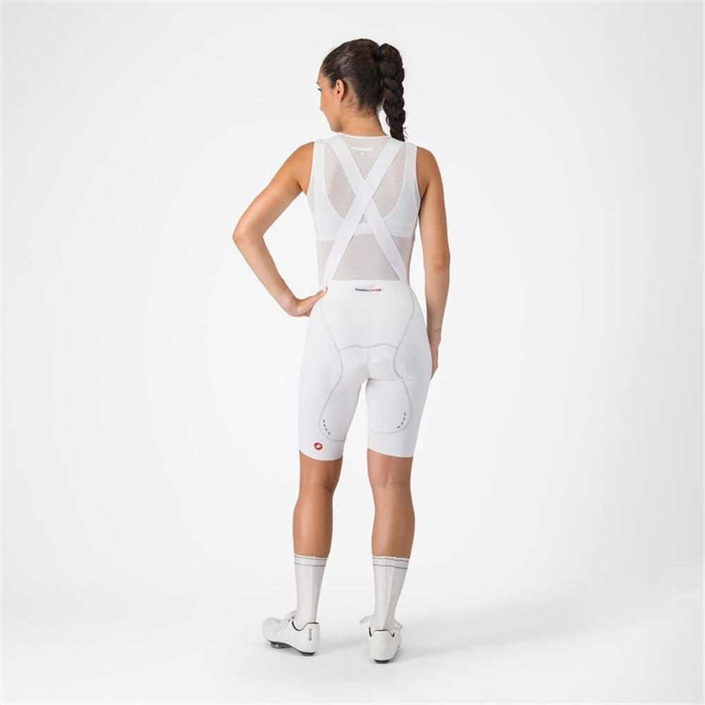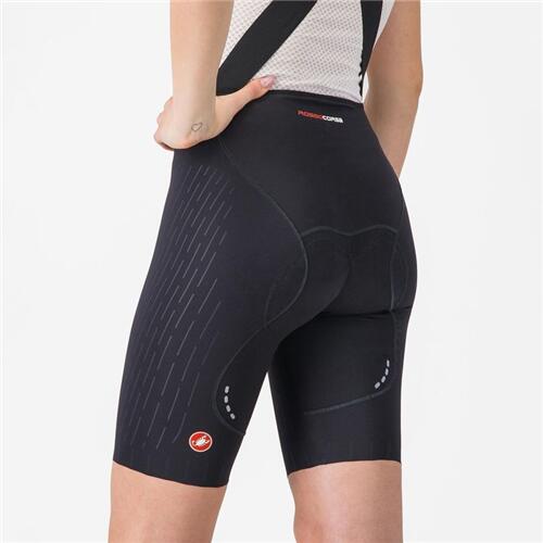 From your local training route to the world's toughest bike races, the Free Aero Race S W Bibshort was developed to meet the demands of the performance cyclist. When you swing a leg over a bike, the first thing you want out of your bibshorts is comfort. The Forza2 Stretch fabric molds to the body without constriction, allowing the fabric to move with every pedal stroke. The bib straps are kept lightweight and minimal while still being supportive, stretchy, and breathable to maintain a high level of comfort. The silicone grippers at the leg endings keep the short in place right where you want it. And, of course, we've used our Progetto X2 Air Seamless Donna seat pad so you can stay comfortable even on the longest training days. In the modern world of performance cycling, aerodynamics has quickly become one of the most important components. After countless hours in the wind tunnel, we've aero optimized the bibshort to give you a 3% decrease in CdA, making it the fastest Free Aero Race Bibshort we've ever created. This means every watt you produce can be used to make you go forward faster.