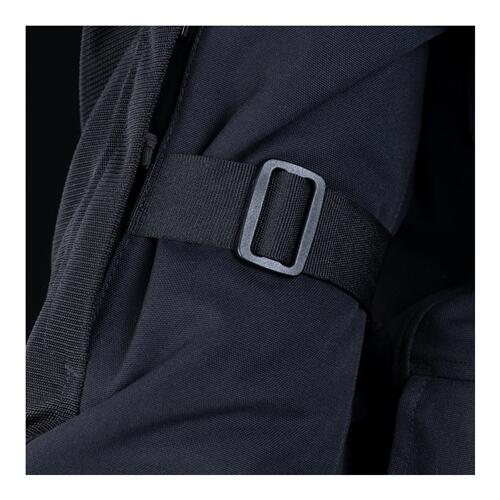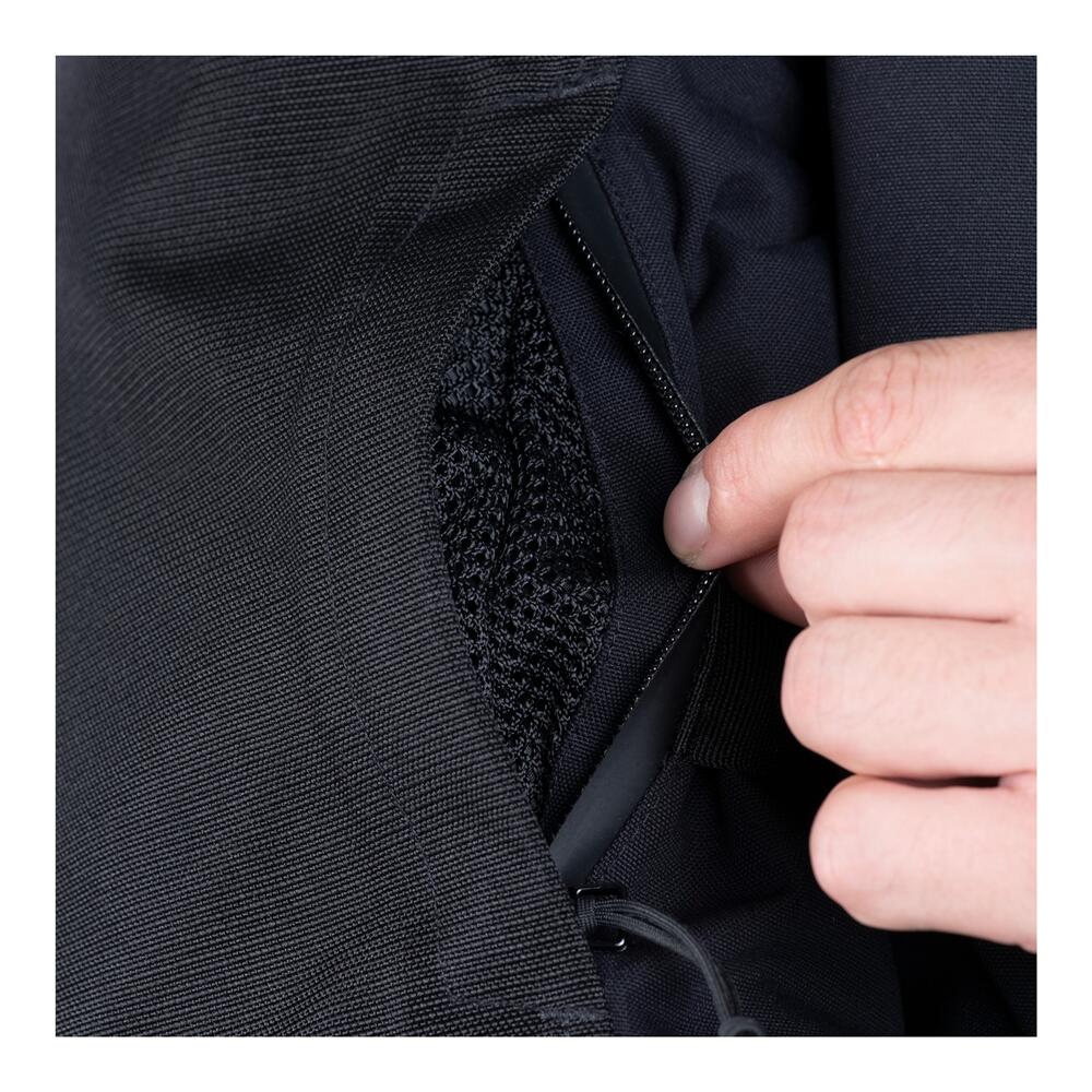 Large chest vents are now easily operated and fastened open with one hand, without even needing to look at them. In addition to the water-resistant zippers, clever fabric techniques create rain channels that further prevent rain ingress. Semi-autolock zippers ensure the flap remains closed when not in use.