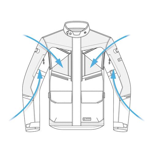 • Large foldback chest direct vent with hook and loop fastening, can be easily used with one hand.
