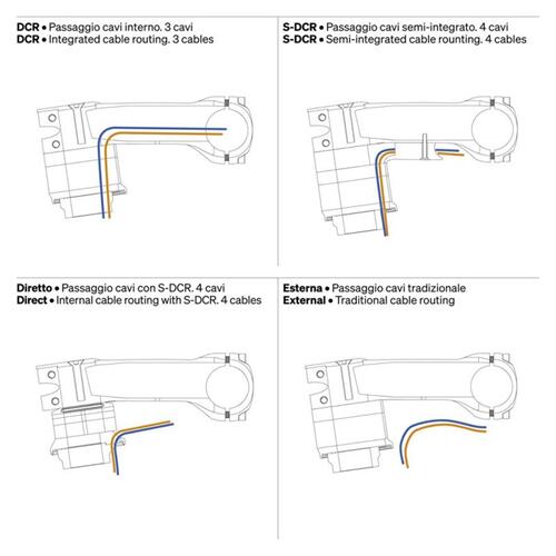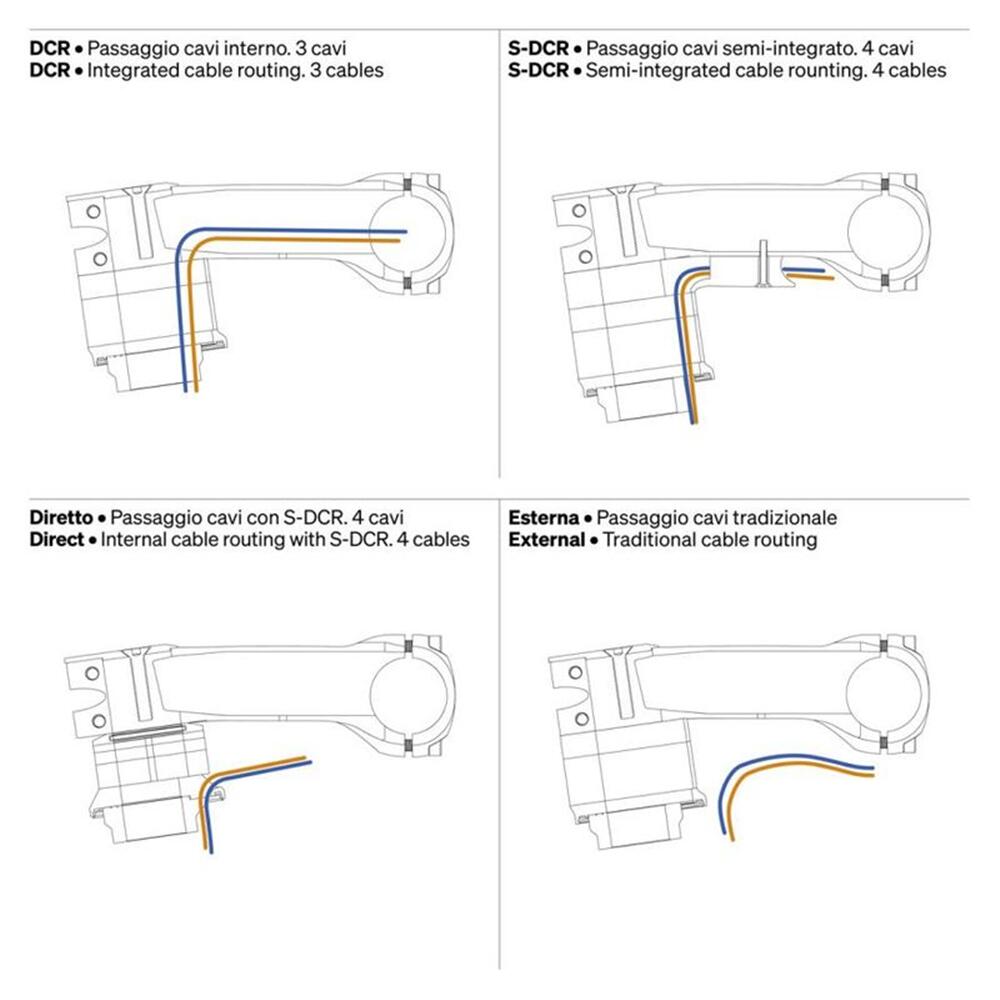 • Note:The internal cable routing (DCR) fits electronic groupset only (up to 3 cables), the semi-integrated cable routing (S-DCR) fits any bike & groupset configuration (up to 4 cables).