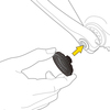 Engages the 16 notches of the external bearing cups. Small plastic tool engages the 8 internal splines of the crank arm adjustment cap and engages 16 notches of the external bearing cups for Shimano® BB 9000 for easy removal or installation.