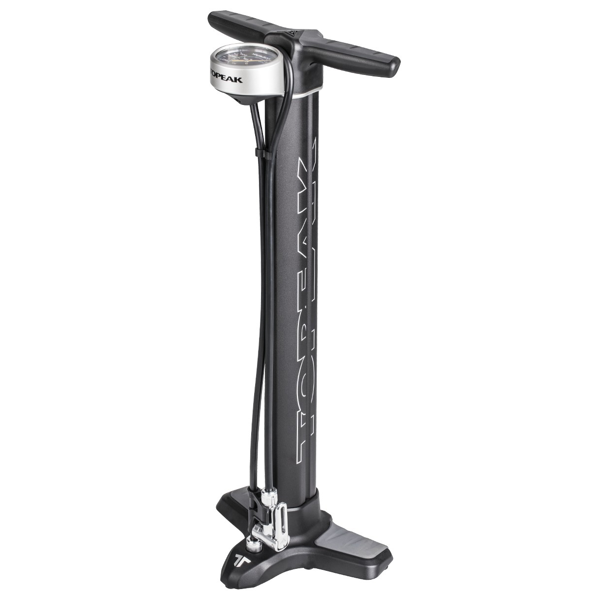 For over 25 years, Topeak engineers have had one dream in mind. Create the ultimate floor pump. It must have high pressure air output and massive volume delivery to fill both road and MTB tires easily and efficiently. TwinTurbo technology utilizes the pull and push of every stroke by transferring air between its two barrels. Pulling the handle up moves a massive amount of air volume from the larger barrel into the smaller barrel. Pushing the handle down compresses the air in the smaller barrel into high pressure output that fills road tires with high pressure, or MTB tires with large volume. No matter the type of tire, the JoeBlow Twin Turbo will literally blow you away.