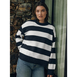 Huffer Womens Kenzie Stripe Knit Crew Navy/White